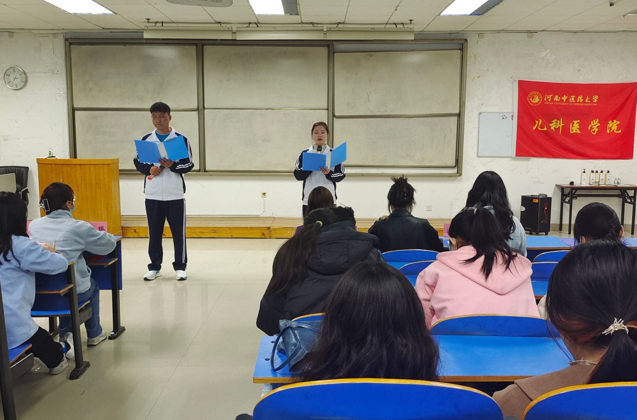 本网讯(文/孟如梦 图/韩乐群)为落实高等教育“立德树人”的根本任务,进一步激发学生的爱国热情,坚定“四个自信”。麦田影院 将思政教育融入学生活动,于3月21日晚7:00在二楼阶梯教室开展“儿医之声”系列活动——“诗诵祖国”朗诵大赛。此次活动由麦田影院 学工办主办,院学生会艺术部承办,学工办辅导员孟如梦老师、主席团唐新瑞、组织部部长李聿晓、艺术部部长雷翼铭、实践部部长赵蕊蕊、创新部部长任冰担任评委。