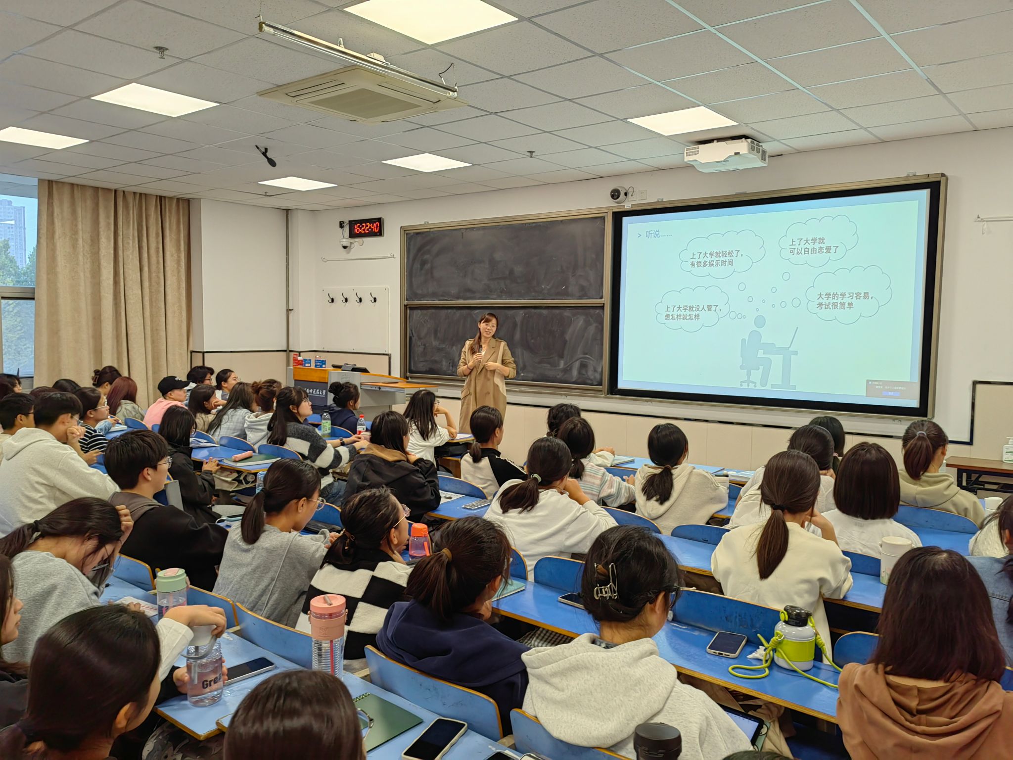 整堂讲座,同学们与老师积极互动,课堂气氛轻松愉快,课后新生们就各自关心的问题与老师进行了进一步的沟通。