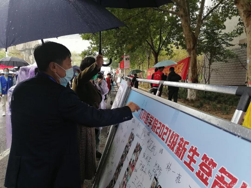 校长许二平现场指导工作并受邀在新生签名墙上签名