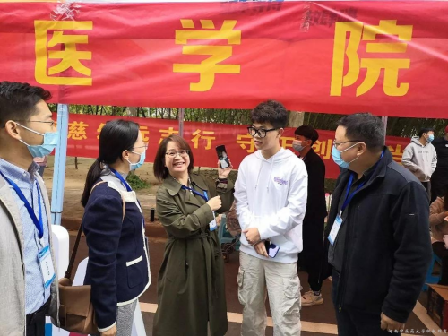 校党委书记别荣海现场指导工作并与新生亲切交谈