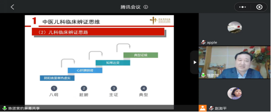 本网讯(文/图 程凯)2022年4月16日晚19:00,麦田影院 2019级中医学(5+3一体化,儿科学)班班主任程凯和河南省中医院儿科副主任陈团营走进腾讯会议直播间,以“养其根而俟其实,加其膏而希其光”为主题,开展线上学风建设主题班会暨儿科传染病中医辨证思路讲座。会议由辅导员张二涛主持,全班30位同学参加。