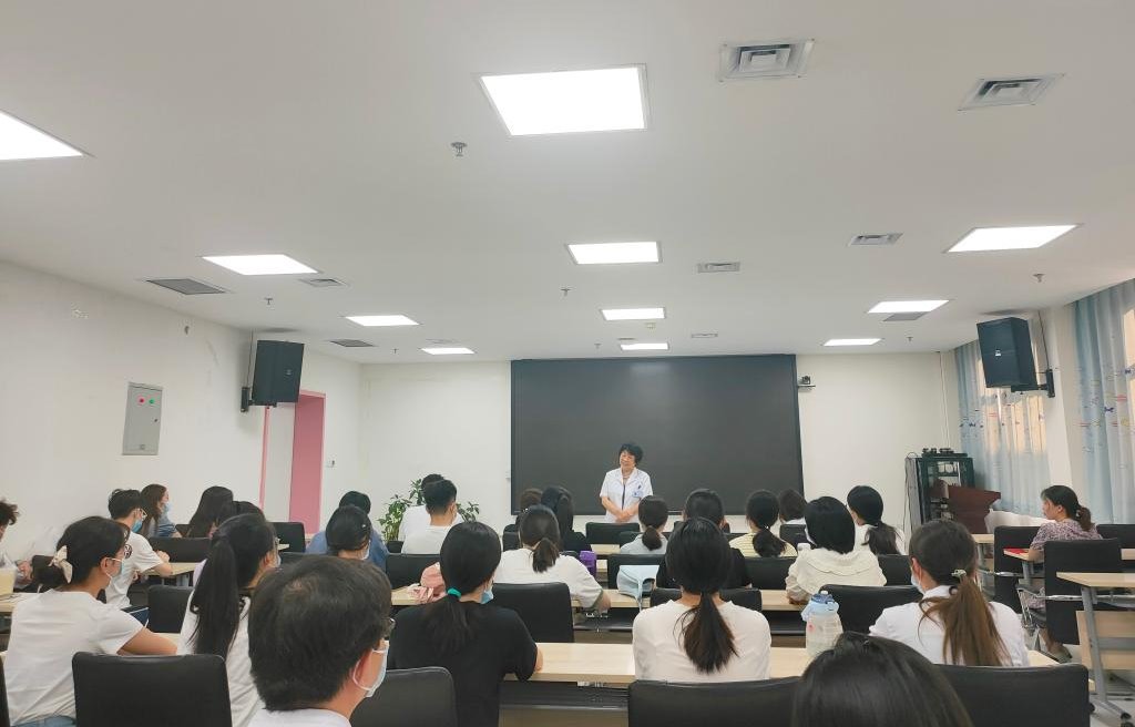 副院长张霞与教学办、临床办组织骨干医师为学生进行了病历书写规范、临床实践技能、重症识别的专题培训,并对实习规培一体化培养模式及安排进行了解读。