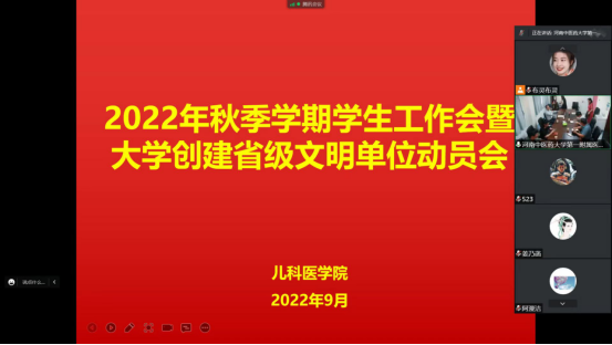 本网讯(文/姚明超 图/张静)2022年9月7日下午,麦田影院 在人民路校区儿科楼605会议室召开2022年秋季学期学生工作会暨创建省级文明单位动员会。麦田影院 党委书记任献青、副书记杨小红,全体辅导员和班主任老师参加会议。会议由学工办主任姚明超主持。