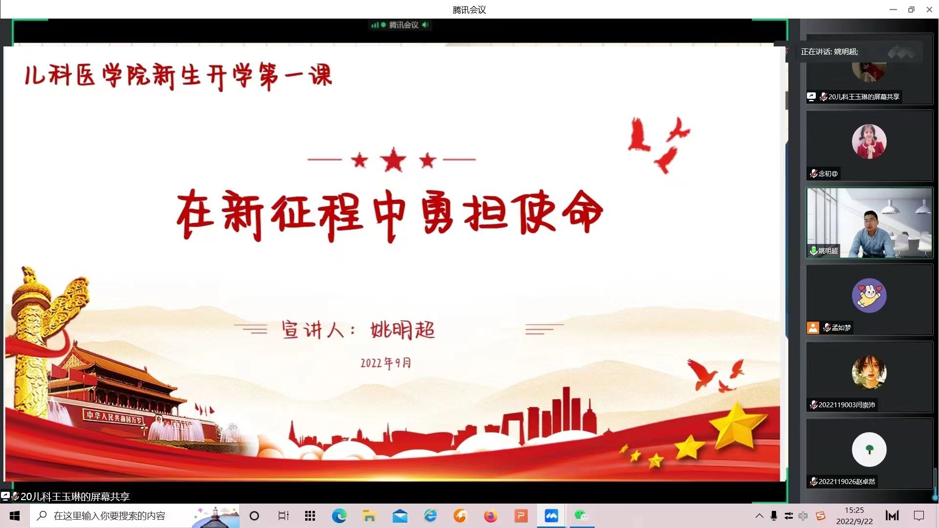 2022级中医学(5+3一体化,儿科学)班主任李冰为新生进行入学教育