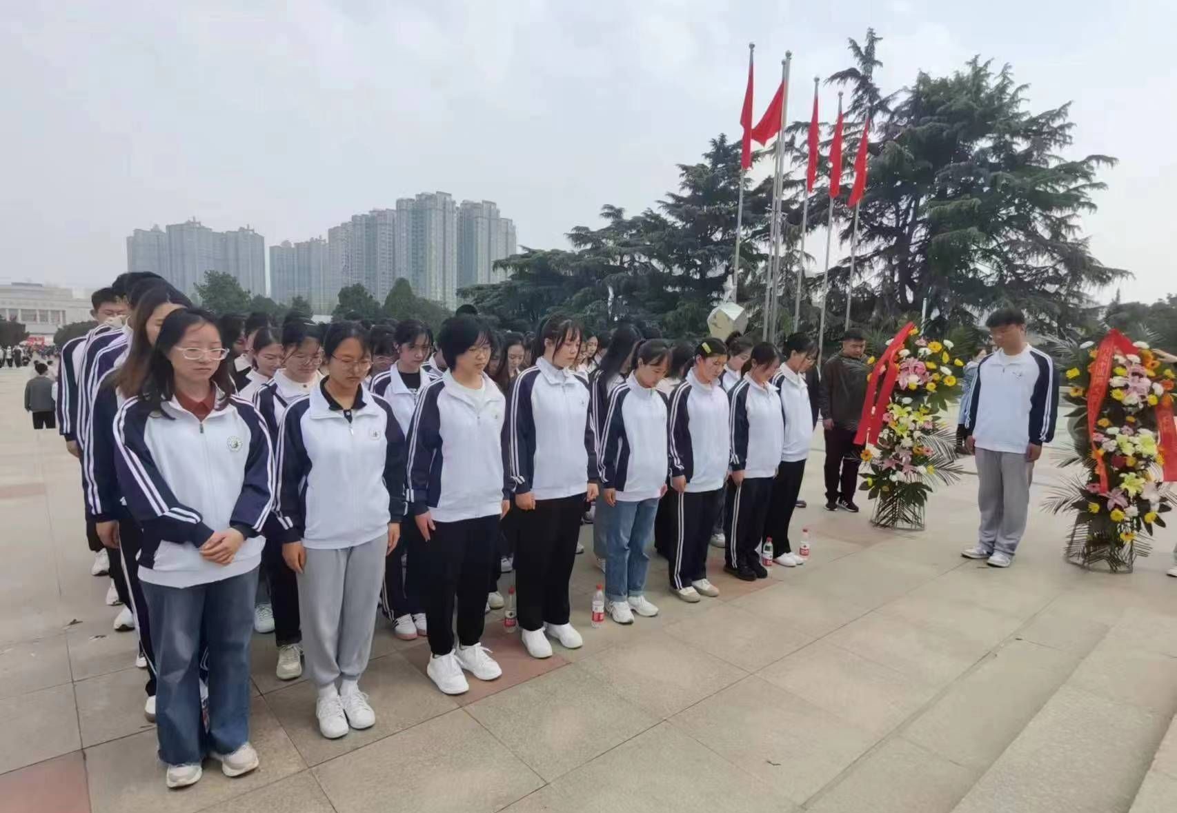 此次教育活动的第一站是参观中原英烈纪念馆,听着讲解员声情并茂的讲述着一个个“抛头颅、洒热血”的英雄故事,参加活动的同学们仿佛又回到了那些可歌可泣的年代,展馆内一件件旧物、一张张图片,无不向同学们诉说着那些承载着先辈热血的历史。在那些历史长河中,为了中华民族的命运而抗争,为了建立一个新世界而前赴后继义无反顾的英雄烈士们,他们坚定的信念,不屈的意志,必胜的决心,是中国共产党建党精神的真实写照,是我们每个青年需要铭记的红色基因,也是我们在新的长征路上需要传承发扬的红色精神。随后,师生们到达烈士陵园,为长眠于此的英烈们敬献了花篮,在纪念碑前,在党旗下,师生们重温入党誓词,进一步坚定理想信念,不忘初心使命。