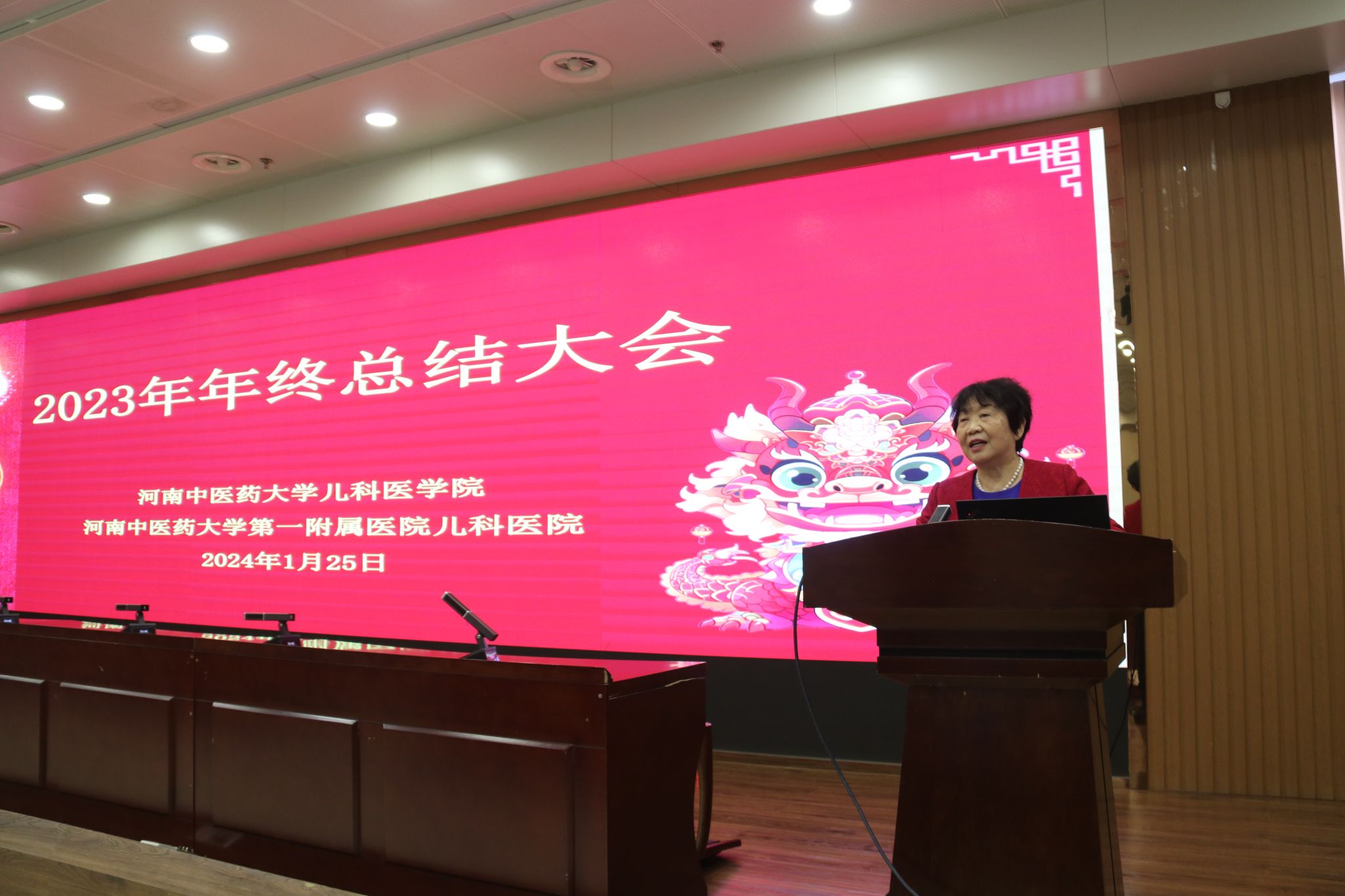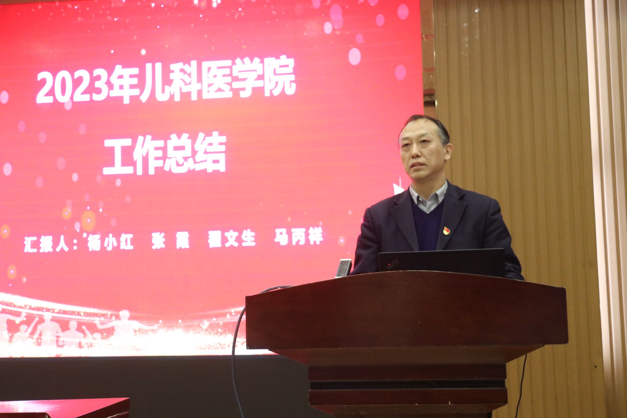 随后,杨小红、张霞、马丙祥、翟文生等同志分别围绕党建与学生管理、教学与研究生教育、临床医疗、科研和学科建设等工作进行了全面总结。一是基层党组织建设提质提效。在推动标杆党支部品牌特色创建上取得突破性成效,获评获河南省先进基层党组织、省级优秀共产党员、省级党建品牌建设立项各一个。二是科研工作再创佳绩。2023年科研立项、科研经费、发表论文数量上都稳步提升。中标各类课题103项,其中国自然4项,较去年增幅56.06%。发表论文175篇,其中中文核心83篇,较去年实现翻番。三是学科和人才队伍建设稳步推进。中医儿科学入选国家高水平中医药重点学科。丁樱教授荣膺全国“最美医生”,当选中国中医科学院学部委员。任献青、马丙祥、宋桂华、宋纯东、何改丽等分获国家级学会主任委员、河南省特殊津贴专家及名中医、“五一劳动奖章”等称号和荣誉。四是临床医疗凸显领先优势。牵头制订《全国儿童呼吸道感染疾病中医诊疗方案》等行业诊疗方案和指南。临床业务规模达到历史新高,全年门诊诊疗人次和出院病人量,较2022年分别增加45.9%、79.6%。五是教学质量大幅提升。大力推进教改,加强师资力量培养,促进教学质量提升,获评省级课程项目和示范性教学案例各1项,获评河南省优秀研究生导师团队和指导老师各1个,教评成绩跃升全校第一。六是学生培养品牌效应显著。持续推进儿医晨读、名师导航、医路领航等特色品牌创建,成效显著,本科生考研率居全校前列,多名学生和学生作品在全国和河南省大学生学科竞赛、创新创业大赛中获奖。
