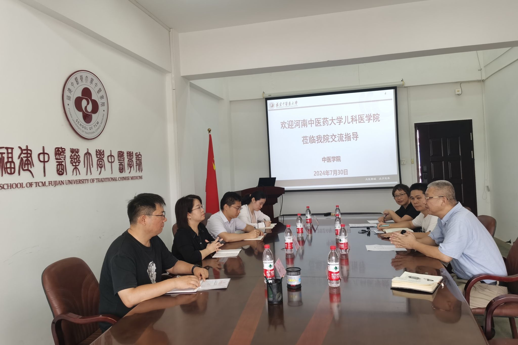 7月30日,麦田影院 一行四人到福建中医药大学中医学院五行楼会议室与该学院相关人员开展交流座谈。福建中医药大学中医学院副院长李楠对麦田影院 一行的到访表示热烈欢迎,介绍了该校中医学“5+3”一体化专业本科阶段培养方案基本情况和近年来取得的成绩。张霞介绍了麦田影院 建设的历程和发展概况,重点分享了中医学(“5+3”一体化,儿科学)专业在临床规培、导师制、医教协同、学业转段考试、学生管理、党员发展等方面的诸多探索与举措。随后,双方就建设中遇到的问题和今后的发展进行积极探讨。