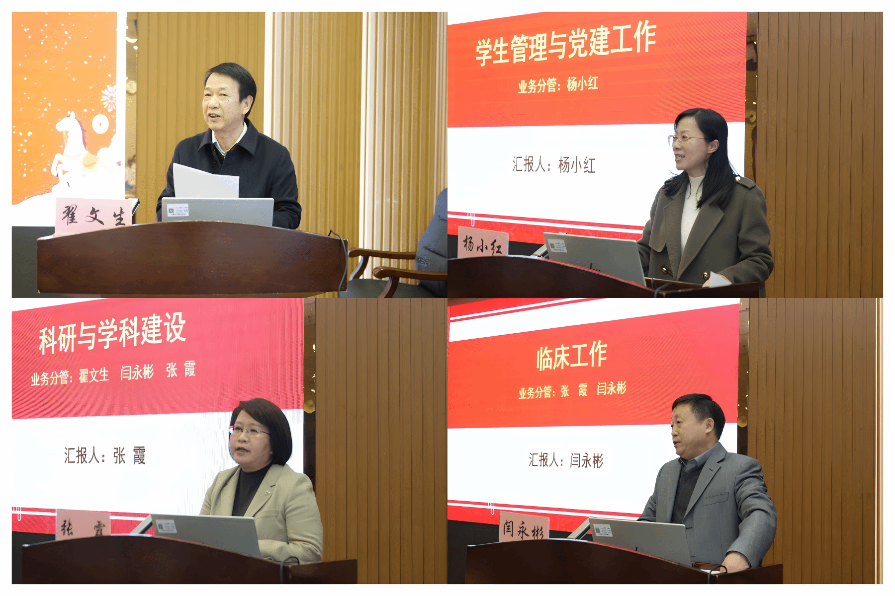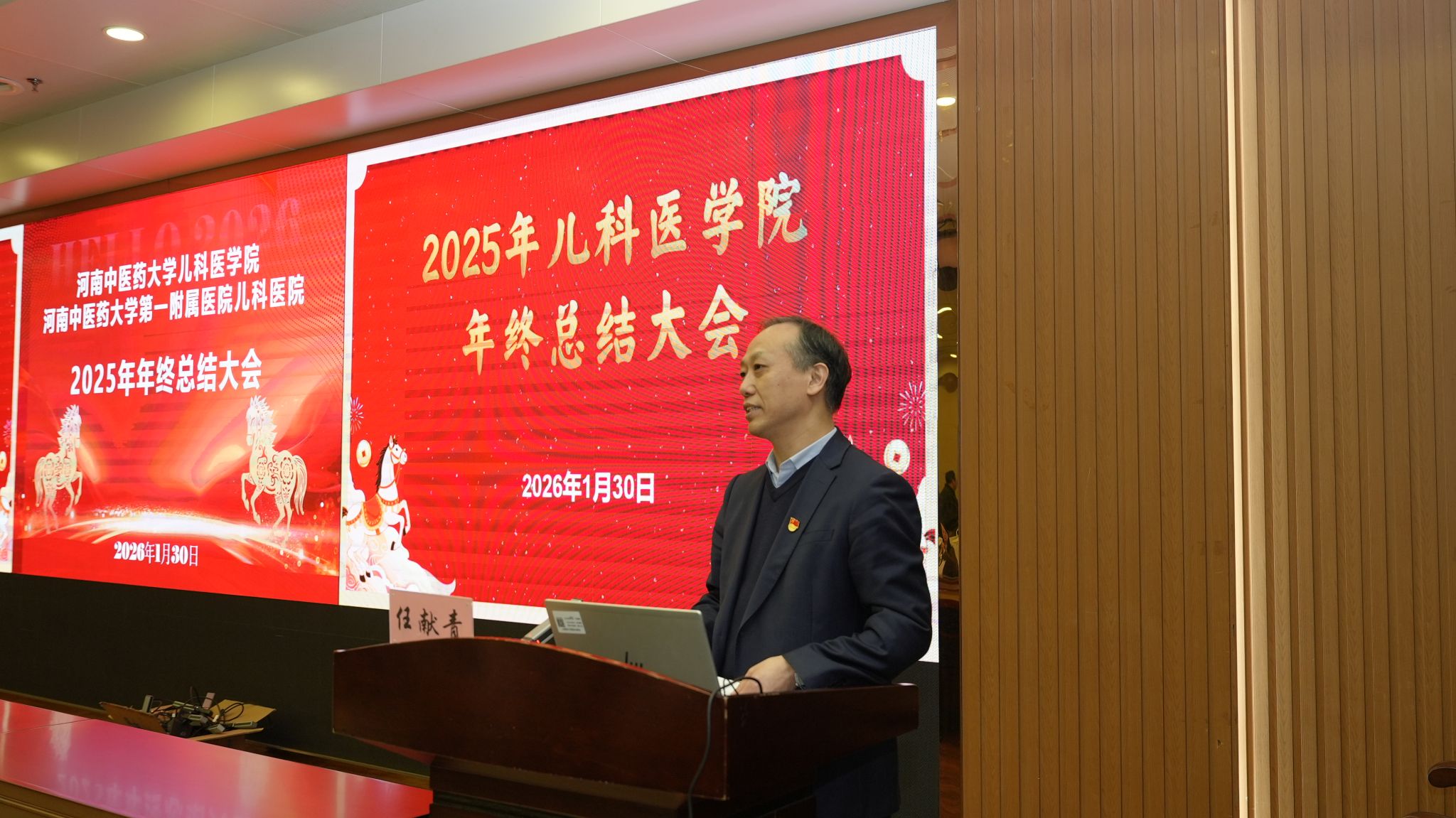 随后,学院班子成员杨小红、张霞、闫永彬分别围绕党建、临床医疗、科研和学科建设、教学与研究生教育、学生管理等工作进行了全面总结。一是党建引领促发展,品牌创建成效显著。坚持党建引领业务、品牌赋能发展。党支部品牌特色创建持续推进,省级样板党支部创建立项,省级党建育人创新项目通过结项验收。二是科技创新和成果转化又有新突破。获批省部级以上课题22项,发表论文193篇,重大成果转化2项,科技创新方面稳步提升。三是人才引育强根基,梯队建设成果丰硕。任献青教授当选岐黄学者。多人获河南省医疗卫生和科技人才称号。新增博硕导8名,新聘高级职称10人。四是临床医疗服务能力持续提升。医疗领域获批国家中医儿科医疗质量控制中心。举办国家级、省级学术会及继续教育项目32场,充分发挥区域医疗中心辐射带动作用。五是教育教学改革持续深化。教学领域推进“中西医结合儿科创新学院”申报,在教改课题立项、教材编写、论文发表、教学竞赛获奖人次等各方面持续增长。六是学生培养品牌效应显著。持续推进“儿医晨读”、“名师导航”、“慈幼志愿服务”等特色品牌创建,“岐黄幼学”育人项目获优秀育人品牌。学生在创新创业大赛、学科竞赛等各类高水平大赛中获省级以上奖项十余项。