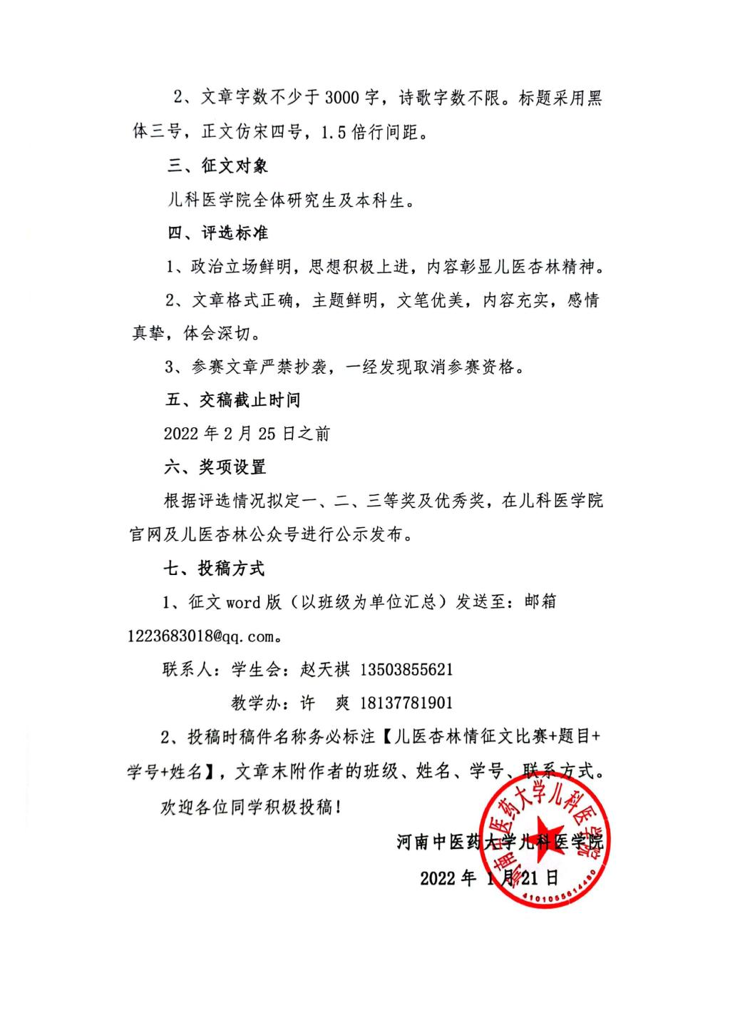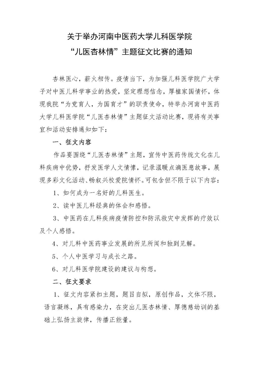 关于举办麦田影院 “儿医杏林情”主题征文比赛的通知