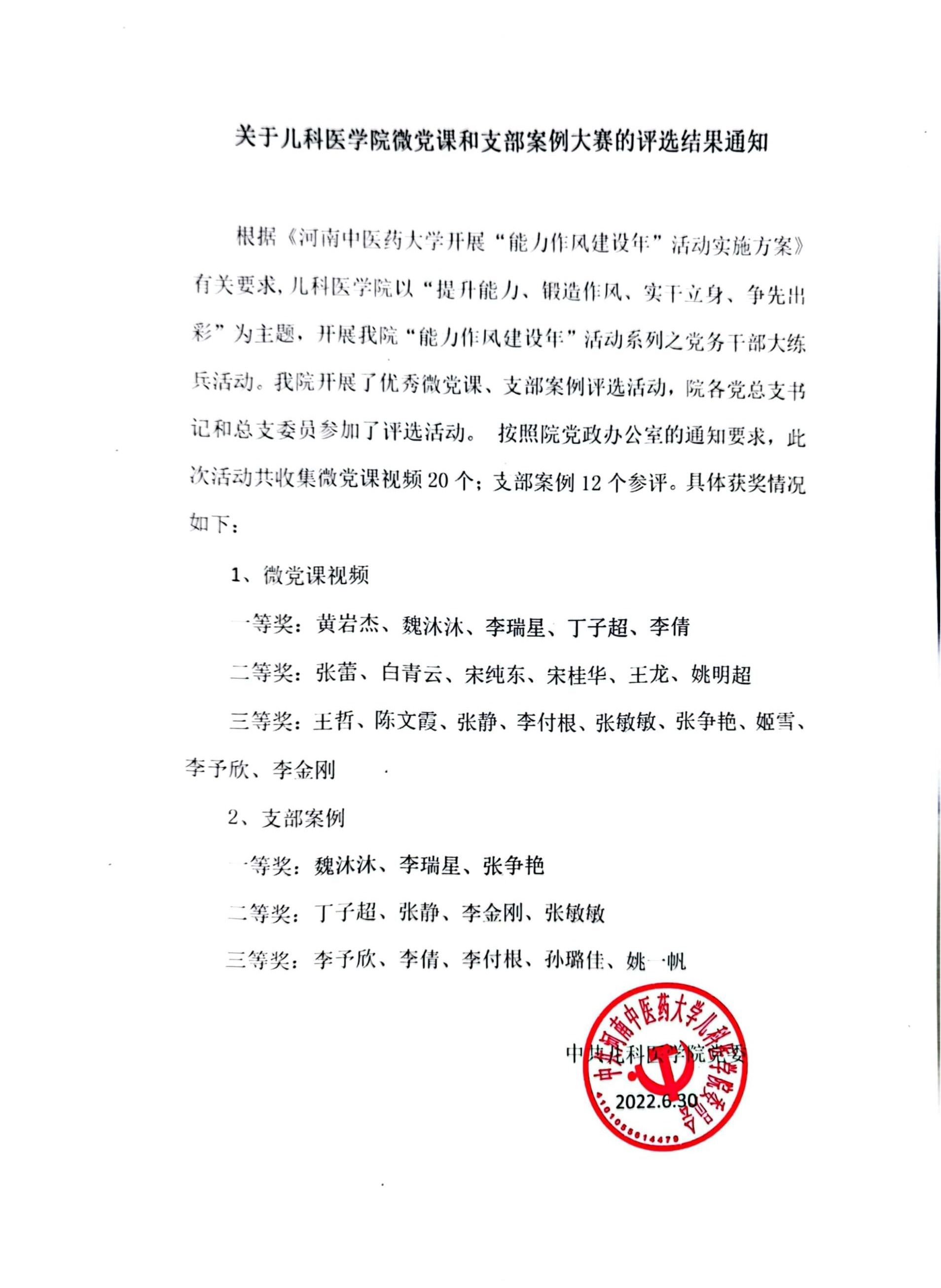 关于麦田影院 微党课和支部案例大赛的评选结果通知