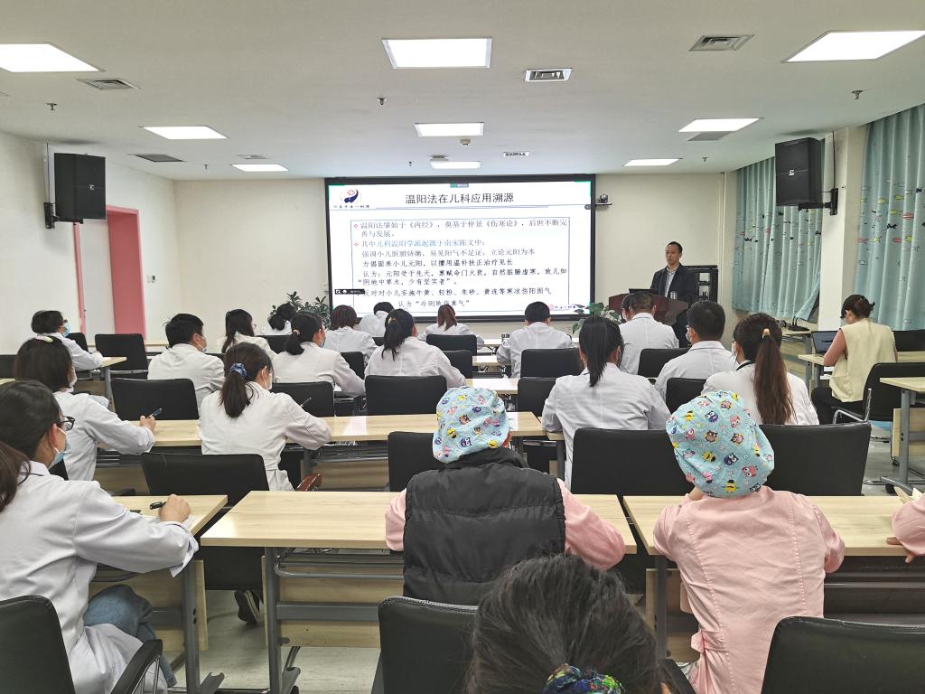 本网讯(文/李瑞星  图/雷亚星)2022年4月15日上午,为加强儿科临床中医特色理论学习与应用,提高进修医师、研究生中医儿科临床诊疗能力,麦田影院 教学办邀请麦田影院 党委书记任献青教授进行了“温阳法在儿科疾病中的临床应用”专题讲座。讲座以线上、线下相融合的方式进行,近百人参加了本次学习。