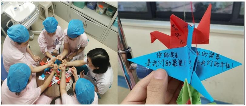 了解到患儿的病情,宋纯东主任带领团队,制定医护一体化治疗方案。上班时间细心查房,下班时间手机远程解答,实时与病人沟通交流。儿科六区医护用精湛医术和热情服务守住患儿及家属生活的希望。患儿生日当天,护士阿姨用几百只千纸鹤把病房装点得格外漂亮,医护人员、患儿家属同唱生日歌,送上暖心的祝福。患儿满含热泪,感激之情溢于言表。