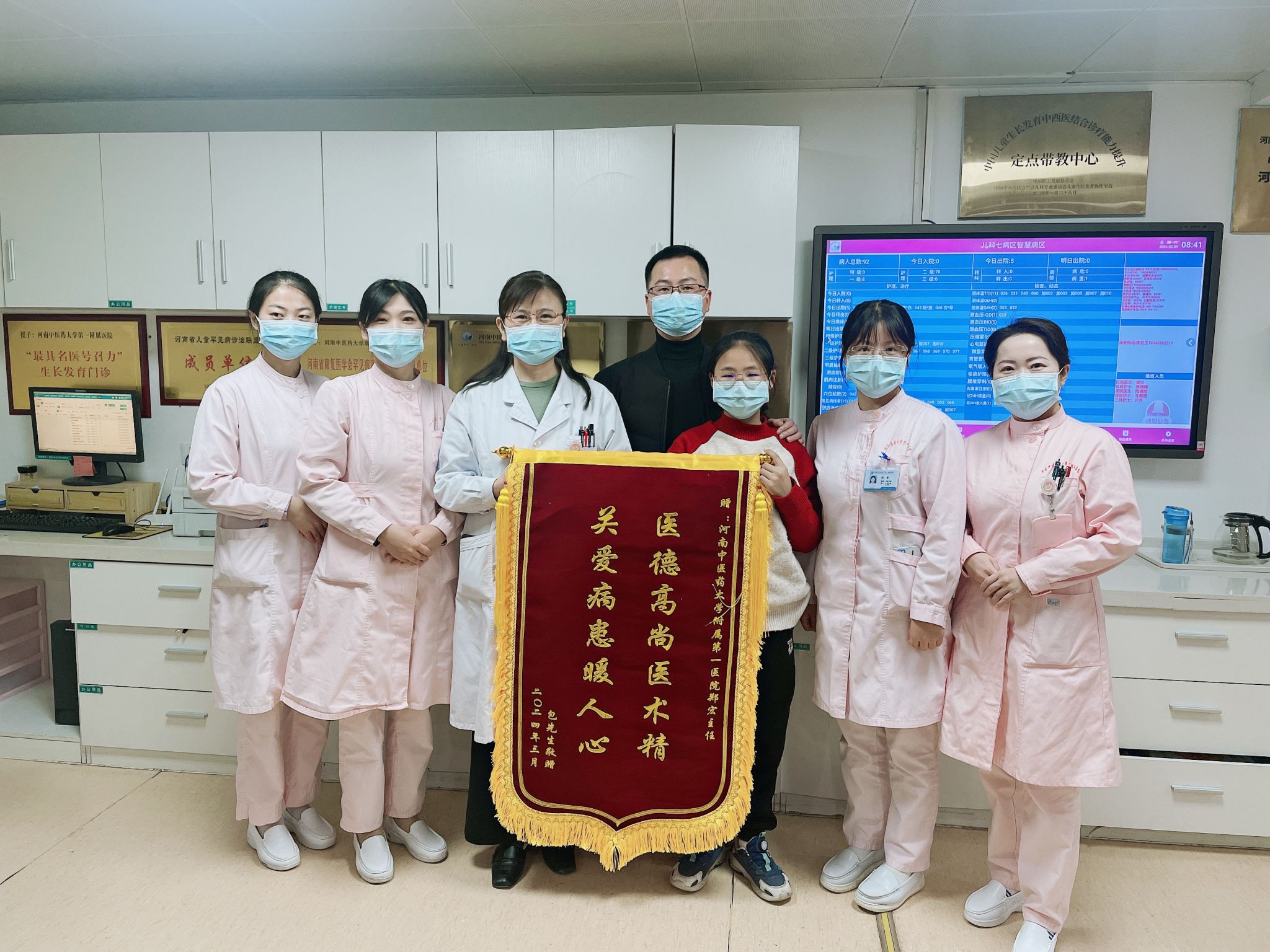 精准治疗,细心呵护,让孩子“亭亭玉立”;一面锦旗,是一个家庭对儿童神经遗传代谢内分泌病区的肯定。该团队将继续以此为动力,为儿童的健康成长保驾护航。