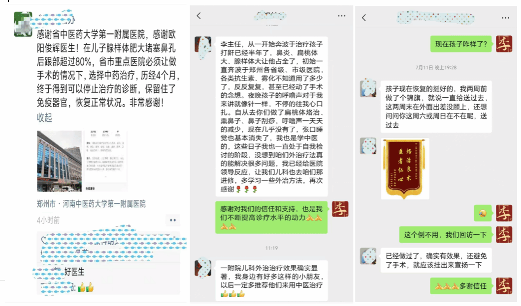 本网讯(文/欧阳俊辉 图/佘悦)近日,儿科传统特色诊疗部收到一份来自网络的的感谢。1例腺样体重度肥大患儿(堵塞程度超过80%),因打鼾、张口呼吸症状突出,已发展至睡眠呼吸障碍,严重影响患儿的身心健康。家长焦虑万分,多处求医均告知已达手术指征,强烈建议手术切除。最终几经辗转求诊至麦田影院 ,在我科欧阳俊辉医师悉心诊疗下,历经4月,成功使患儿病症消除。家长激动地说:“听着孩子睡眠时舒畅的呼吸声,压在心底沉重的愁绪终于消散。万分感谢好医院、好医生!”