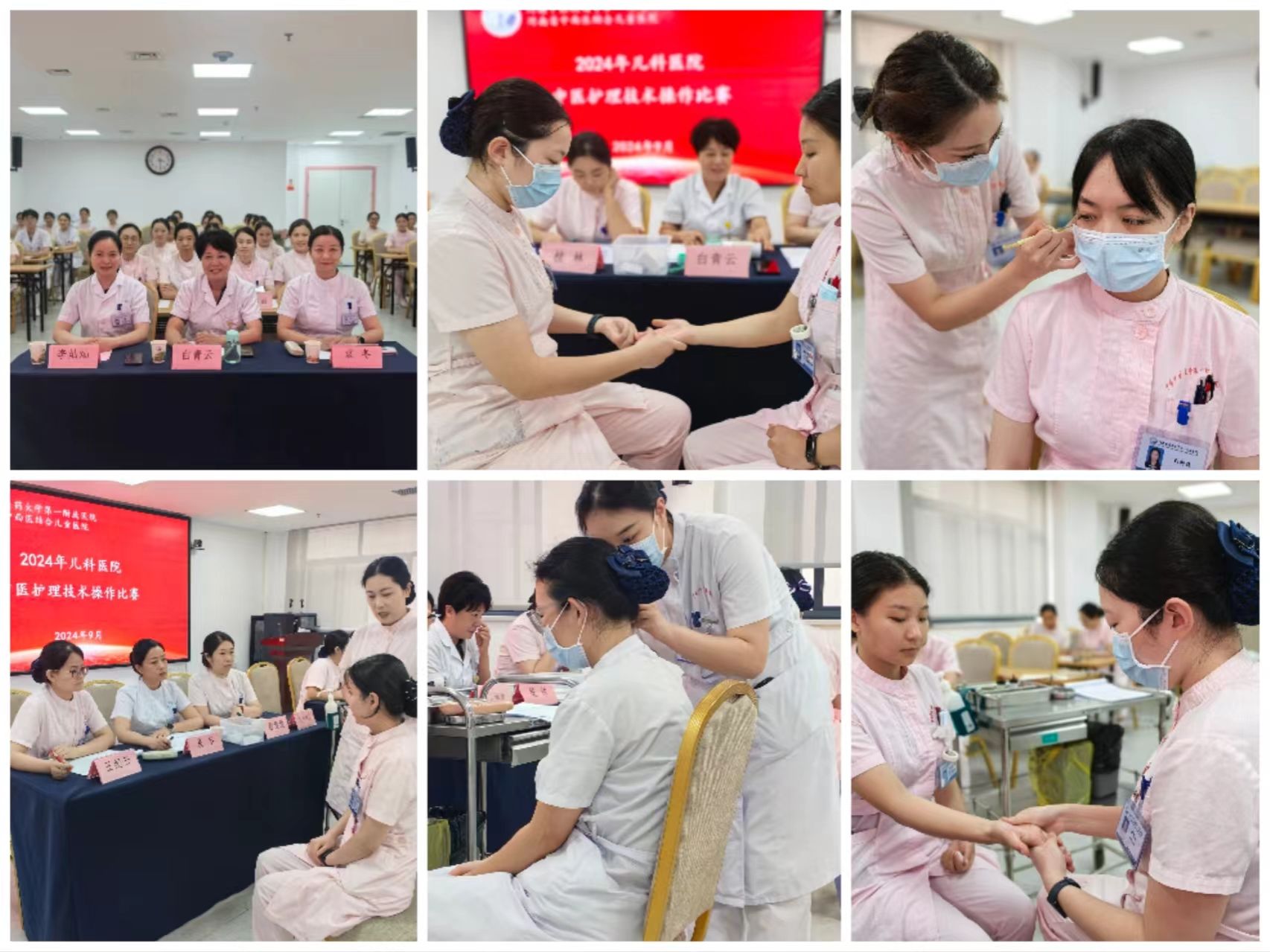 本网讯(文/林琳 图/梁上艳)为进一步提高儿科医院护理人员中医技能操作水平,提升护理人员中医服务能力,在麦田影院 第一附属医院护理部指导下,儿科医院于9月27日下午在医院2号楼601多功能厅举行了“2024年儿科医院中医护理技术操作比赛”,比赛邀请医院生物全息耳穴学组组长、外科第二党总支副书记袁冬,小儿推拿学组组长、儿童脑病诊疗康复中心副主任白青云作为点评专家,儿科医院护理骨干桂林、李亚丽、程倩倩、王纪云担任评委。本次比赛由儿科护理骨干杨迎主持。