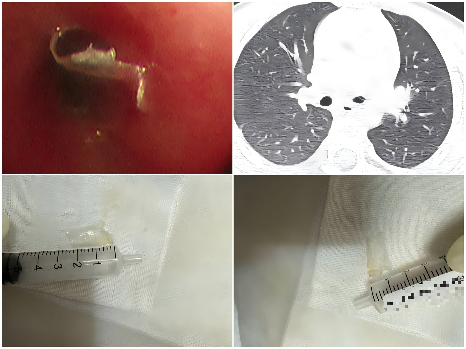 该患儿近1个月来反复出现咳嗽、喘息,虽经多家医院抗生素及雾化治疗,效果始终欠佳。患儿咳嗽伴喘息的症状反复出现,不仅让孩子备受折磨,也让家长焦虑不已。入院前后尽管多次肺部CT、肺部彩超、气道三维重建未显示明显异常,但麦田影院 儿科二区宋桂华主任团队凭借丰富的临床经验,在仔细听诊中发现患儿肺部存在固定部位的喘鸣音,高度怀疑支气管异物可能,气管镜检查是明确诊断和进行治疗的关键。然而,因多次肺部影像均未显示有支气管异物的直接及间接征象,家长一直对气管镜检查存在顾虑和犹豫。面对这一情况,团队医生多次与家长进行深入沟通,最终赢得了家长的信任与同意,为患儿争取到了最佳的治疗时机。