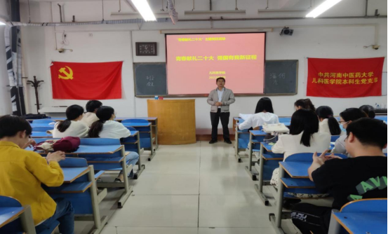 本网讯(文/姚明超 图/张雯)为进一步激发全校师生爱党、爱国、爱社会主义的热情,4月26日下午14:00,麦田影院 本科生党支部开展“青春献礼二十大,强国有我新征程”主题党日活动,此次主题党日活动由本科生党支部书记姚明超主讲,辅导员张二涛老师及全体本科生党员参加。