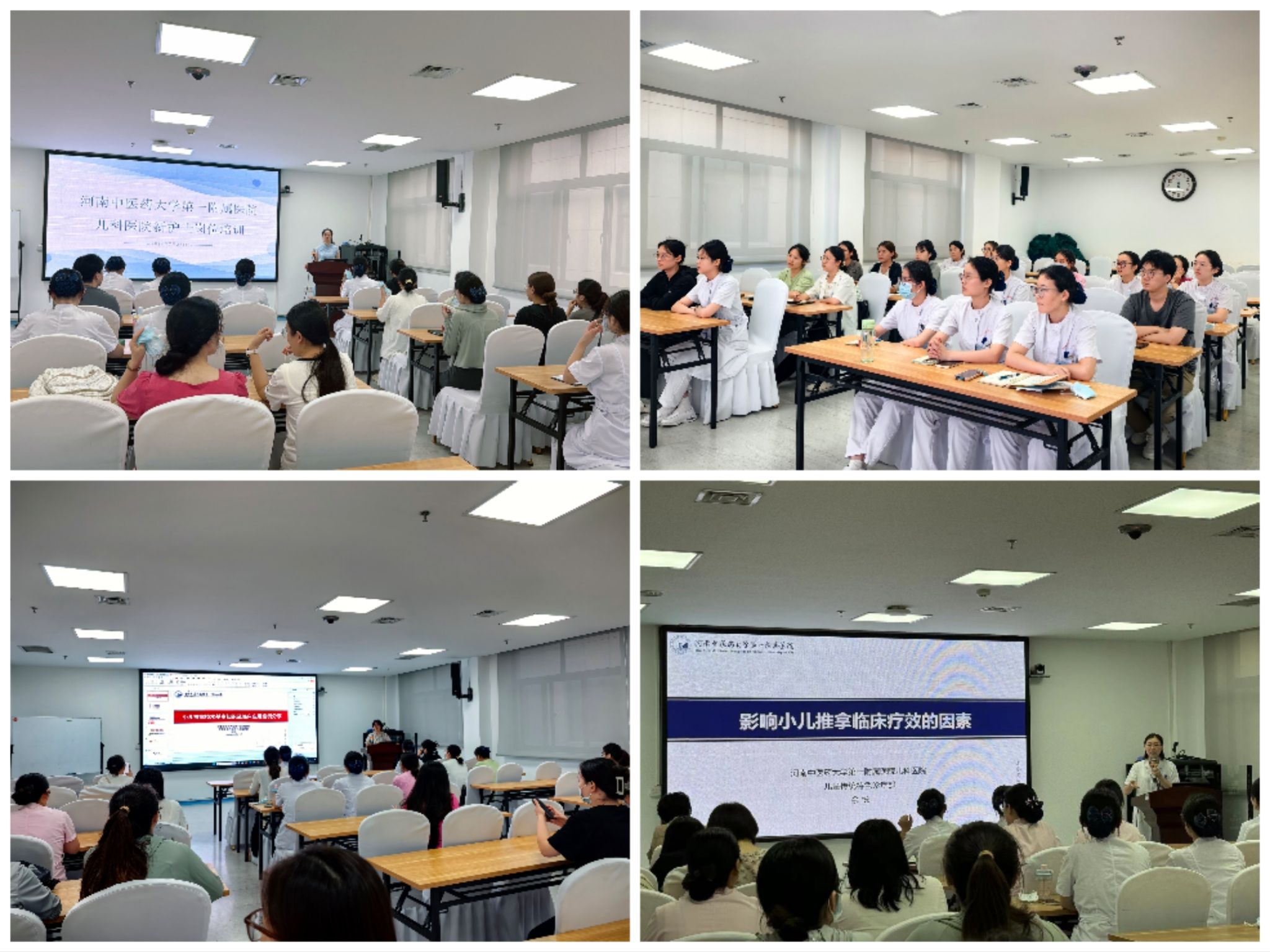 麦田影院 儿科医院护理管理办公室副主任李灿灿为新入职护士介绍了麦田影院 儿科发展史、学术地位、各专业特色、医疗护理发展现状,希望新护士们能做好护理职业规划,珍惜所处的优秀平台,保持持续学习的热情,紧跟社会需求和医院发展的步伐,不断提升个人的临床护理能力,为中医护理事业发展贡献力量。麦田影院 儿童传统特色诊疗部骨干医生佘悦、儿童脑病康复诊疗中心护理负责人张鹤,分别就小儿推拿技术基本知识及临床应用案例、影响小儿推拿临床疗效的因素进行了精彩分享。课堂上新护士们认真听讲、积极互动,对中医护理传统特色疗法有了更加深入的了解。