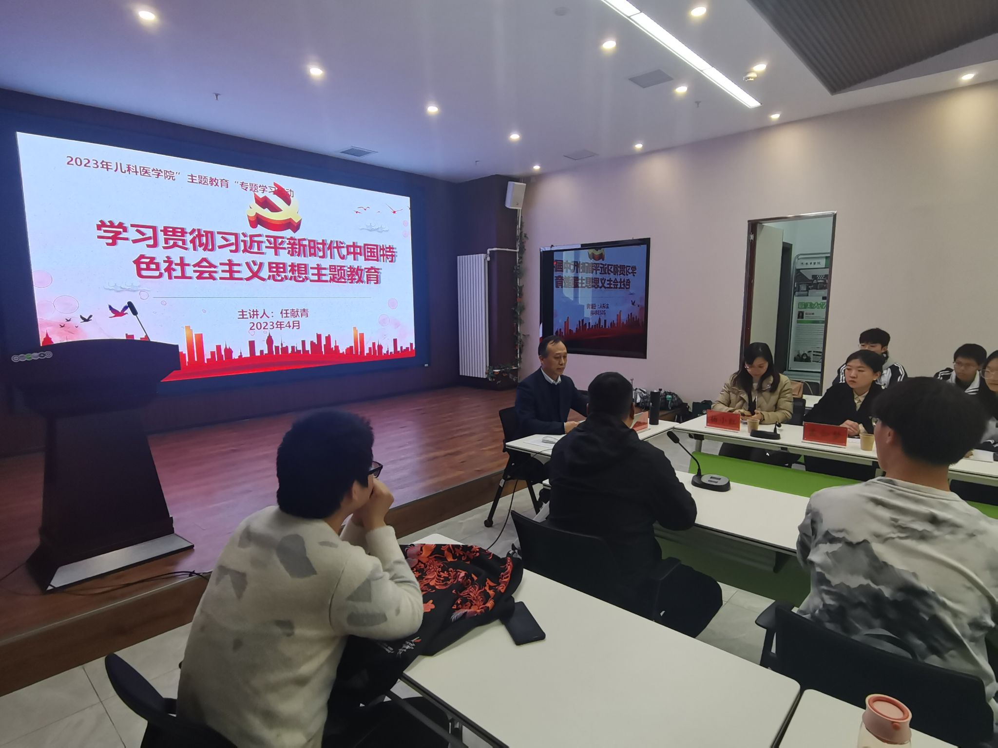 本网讯(文/姚明超 图/王玉琳)为贯彻落实“学习贯彻习近平新时代中国特色社会主义思想”主题教育,深入开展调查研究,2023年4月23日下午,麦田影院 党委书记任献青、党委副书记杨小红、全体辅导员,走进远志学堂,与2022级和2021级中医学(5+3一体化,儿科学)本科班全体学生,开展调研座谈会。会议由杨小红主持。