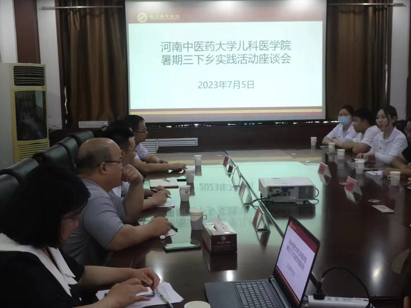 下午4点,栾川县中医院组织开展了座谈会,小分队同学与目前在栾川县中医院就职的我校优秀毕业生王帅进行了面对面交流。
